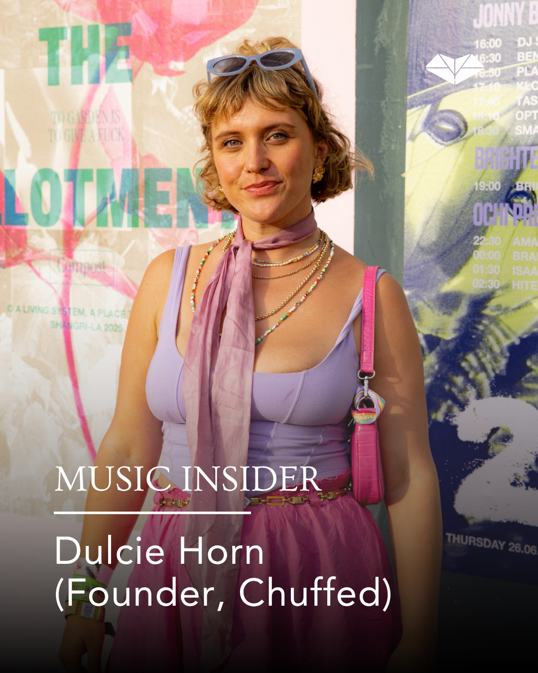 Dulcie Horn is the founder of Chuffed, a creative strategy studio working across festivals and cultural events, with a focus on brand strategy and social storytelling.